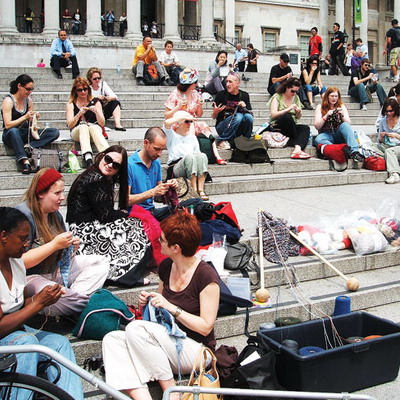 Проходит он тоже необычно, но вполне в соответствии со своим названием: все, кто любит вязать спицами или крючком, собираются в каком-нибудь общественном месте города — в парке, в сквере, в кафе — и предаются своему любимому занятию.