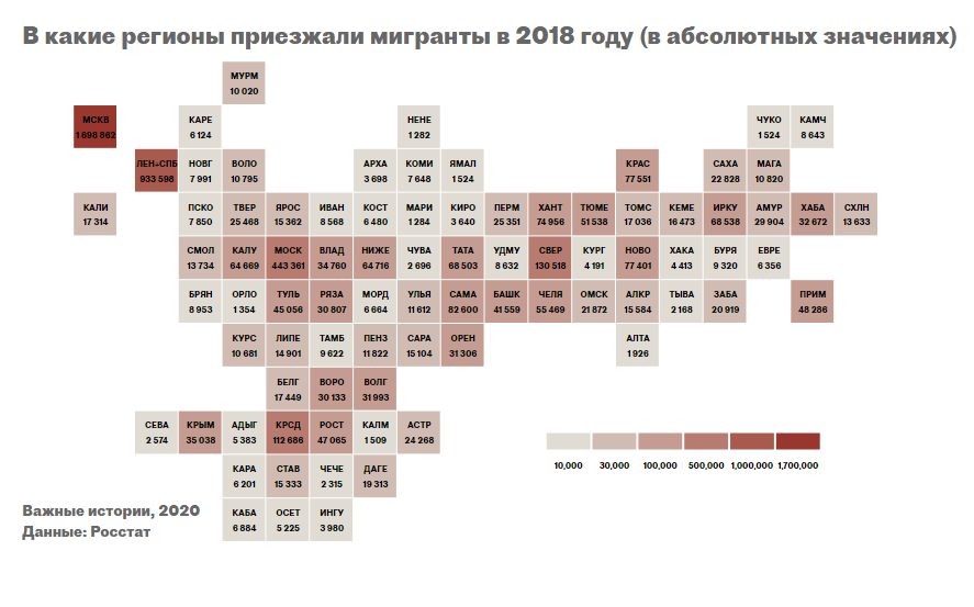 Более подробно данные о миграции в России вы можете изучить на сайте проекта «Если быть точным».