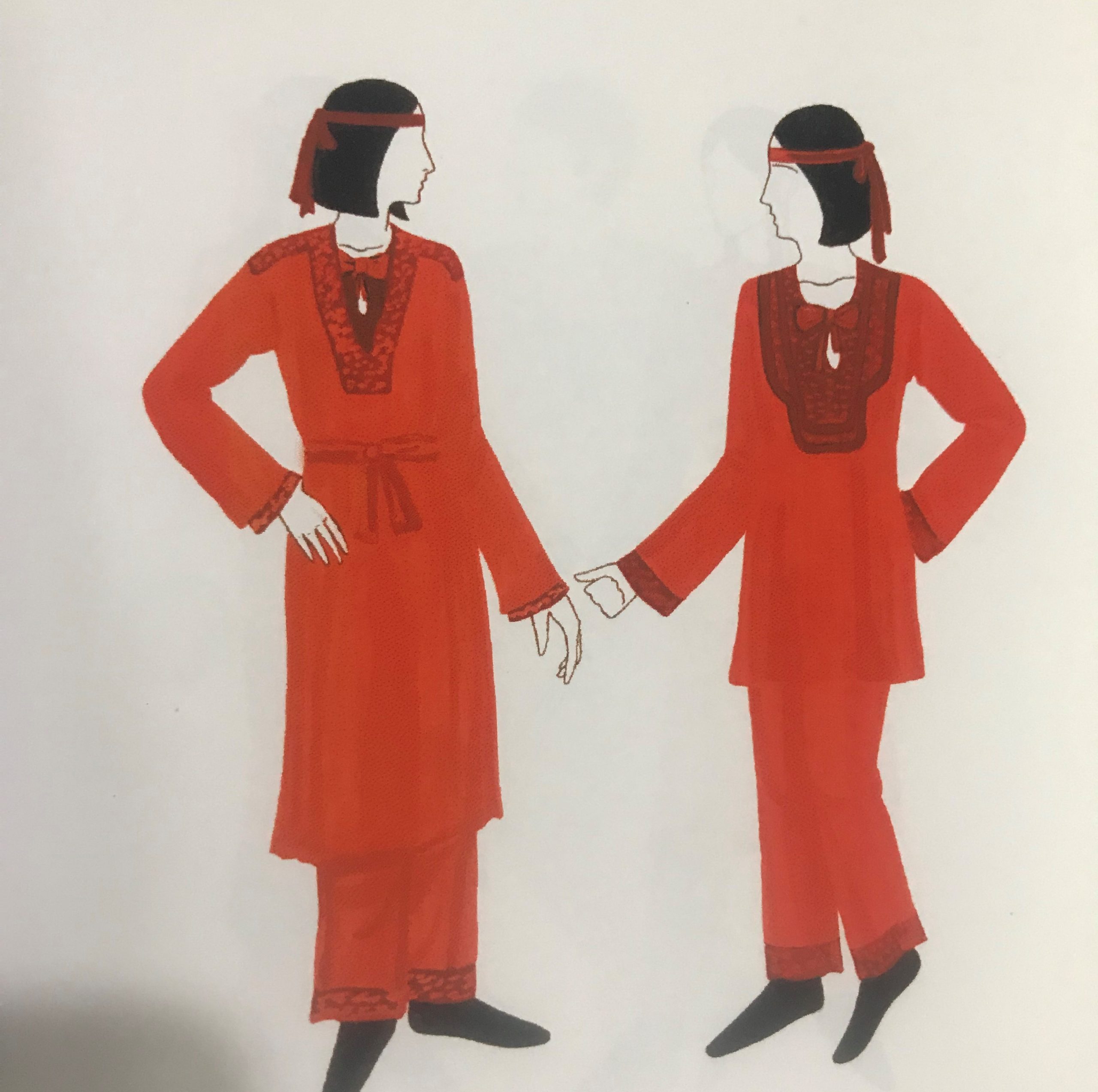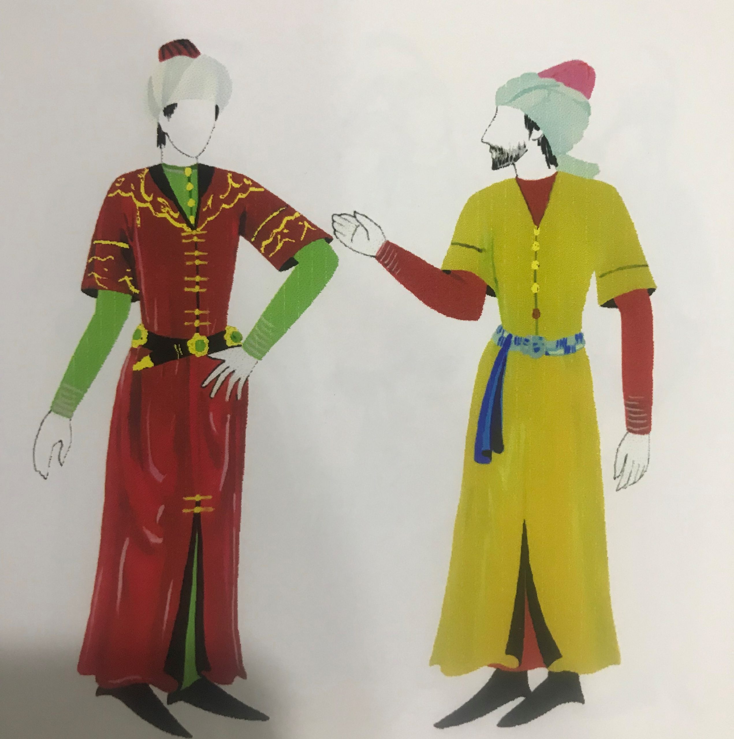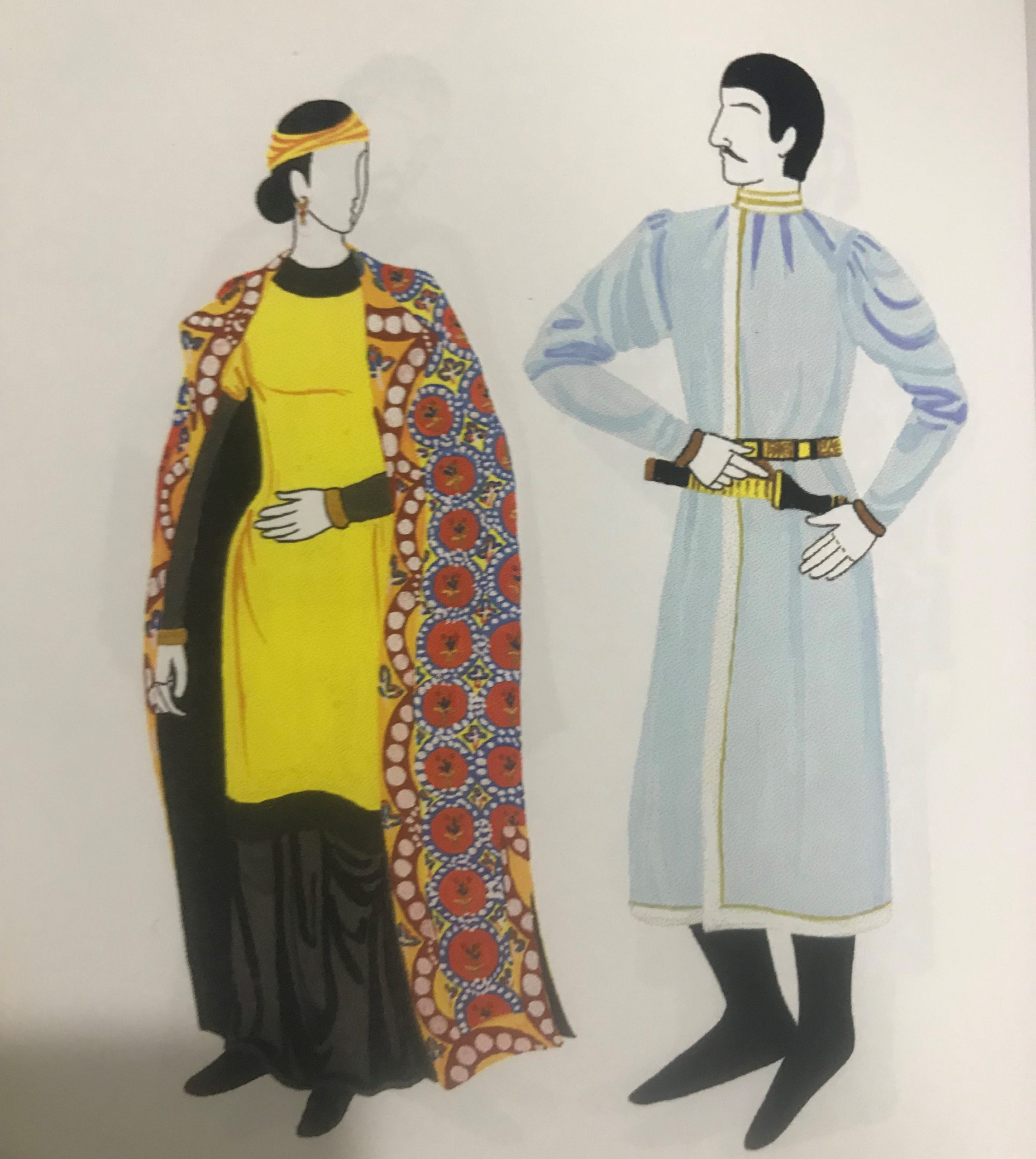 Основным тоном был розовый, красный, голубой. В такие цвета они окрашивались — индиго, сафлором, мареной и червецом. Из шёлка, шерсти и хлопка шили рубахи для верхнего одеяния, нижняя же рубаха также часто была шёлковой (особенно у аристократии), реже её шили из хлопка или шерсти.