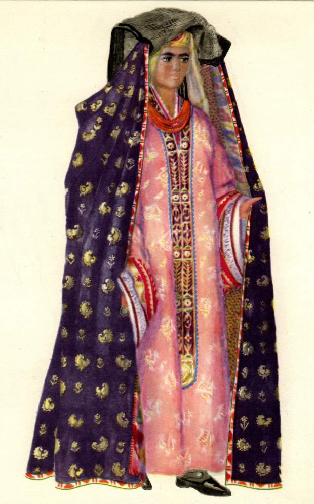 Кроме этих головных уборов молодые женщины, особенно в первые дни после замужества, носили нарядные головные уборы, отличающиеся в каждом районе.