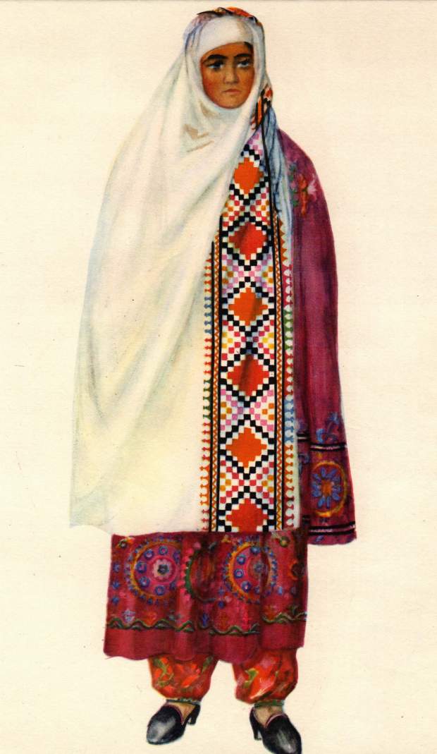 В крупных кишлаках и Пенджикенте – накрывали накидку, а лицо закрывали белой лёгкой тканью.