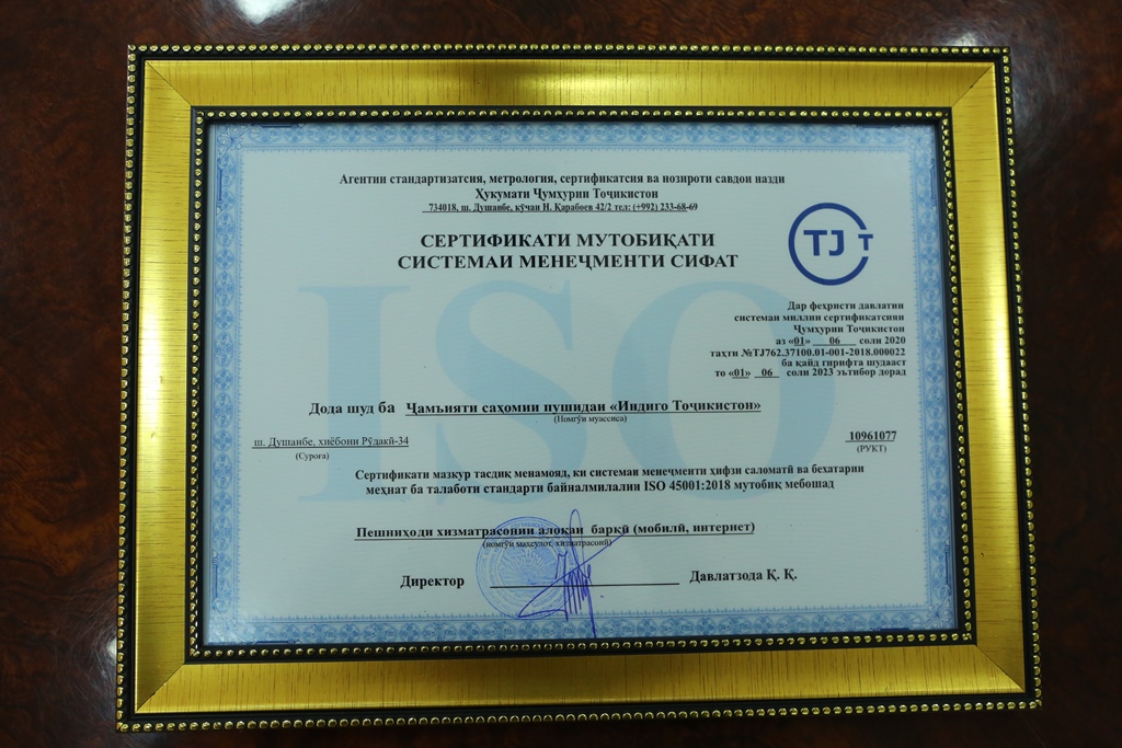 Для Tcell получение Сертификата соответствия системе менеджмента охраны здоровья и безопасности труда ISO 45001 -2018 является знаковым событием. Озодхон отметил: «Это –показатель того, что наши усилия в этом направлении были не напрасными».