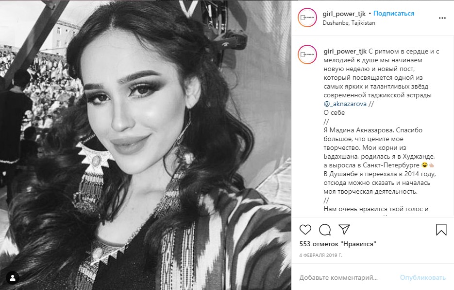 «По поводу того, что интересных таджичек мало, это неправда. Их много, но вот найти их на просторах интернета довольно-таки сложно. Бывает и так, что мы к кому-то обращаемся с предложением об интервью, но эти девушки не хотят "светиться" и отказываются принимать участие в проекте», — делится сложностями Надира.