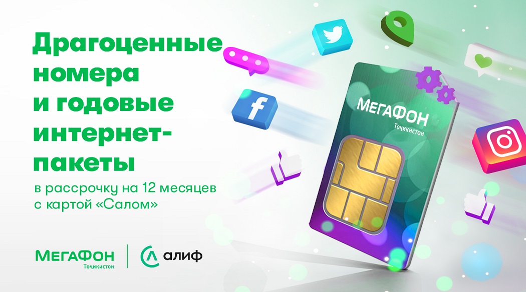 В Таджикистане стартовала совместная акция «Зур» от оператора новых цифровых возможностей и «Алиф Банк». Абоненты, которые приобрели карту «Салом», получают при совершении покупок рассрочку до 12 месяцев. Например, так они могут приобрести «драгоценные» телефонные номера и интернет-пакеты от компании «МегаФон Таджикистан».