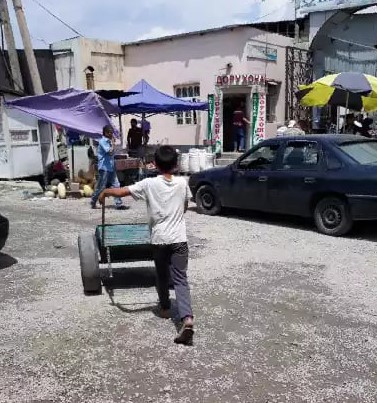 Многие из несовершеннолетних, которые работают в городах, зарабатывая на жизнь торговлей целлофановыми пакетами, перевозкой товаров на тележках на рынках и т.д. – из бедных семей или не имеют отцов. В Таджикистане принято, чтобы мальчики обеспечивали свои семьи, даже если они еще не достигли трудового возраста.