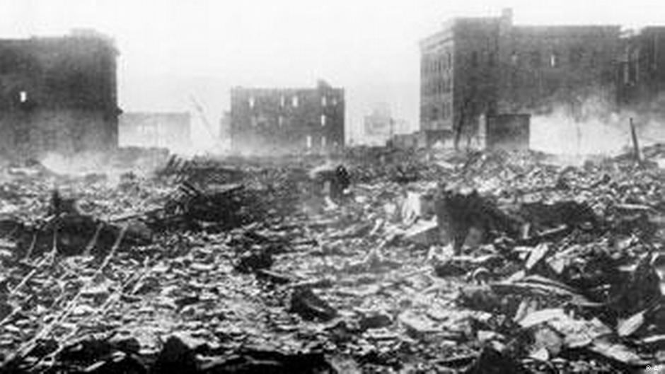 Пожары продолжались в течение многих часов в радиусе четырех километров от эпицентра взрыва. Из 90 тысяч домов 62 тысячи были полностью разрушены.