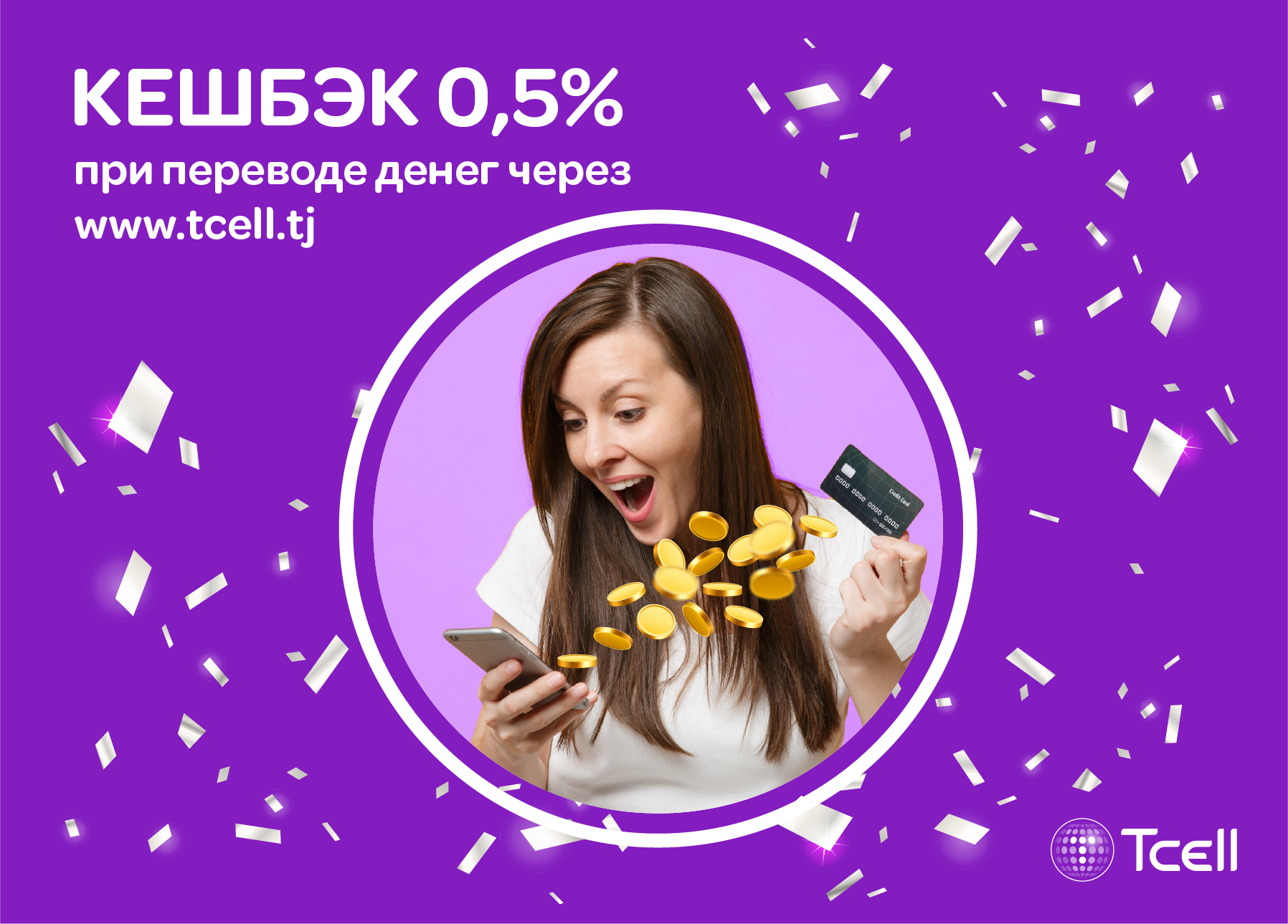 Теперь, осуществляя денежные переводы онлайн через официальный сайт Tcell, вы не только не платите никакую комиссию, но и получите кешбэк в размере 0,5% от суммы перевода!