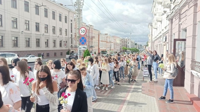 Днем 12 августа в Минске, Витебске, Гомеле, Гродно и других городах Белоруссии женщины с цветами выстроились в «цепи солидарности» — против насилия силовиков. Об этом сообщает белорусское отделение «Радио Свободы».