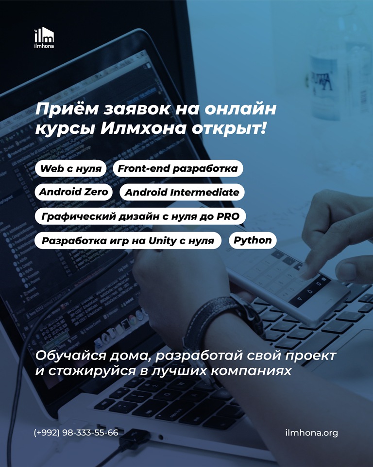 1 сентября в "Илмхона" стартует новый семестр в котором начинают обучение сразу в 10 группах и 8 курсах. Обучение проходит в единственной в стране полноценной образовательной платформе (learn.ilmhona.org), которая объединяет студентов со всех регионов Таджикистана.