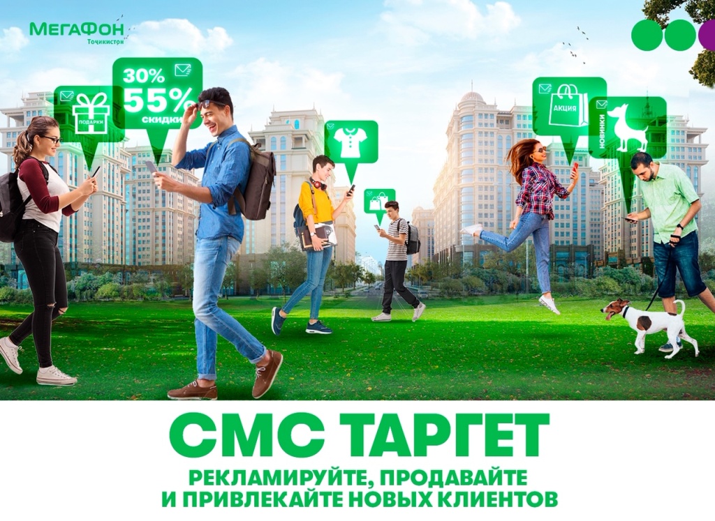 Новая услуга «СМС Таргет» компании «МегаФон Таджикистан» значительно облегчает бизнесу рассылку информации целевой аудитории: SMS получают не «все подряд», как часто случается с традиционной рекламой, а абоненты, которые предварительно дали свое согласие, абоненты нужного возраста и пола, находящиеся на определенной территории. Также возможен отбор получателей по интересам: так, SMS о скидках на мебель получат те, кто посещал в интернете соответствующие сайты.