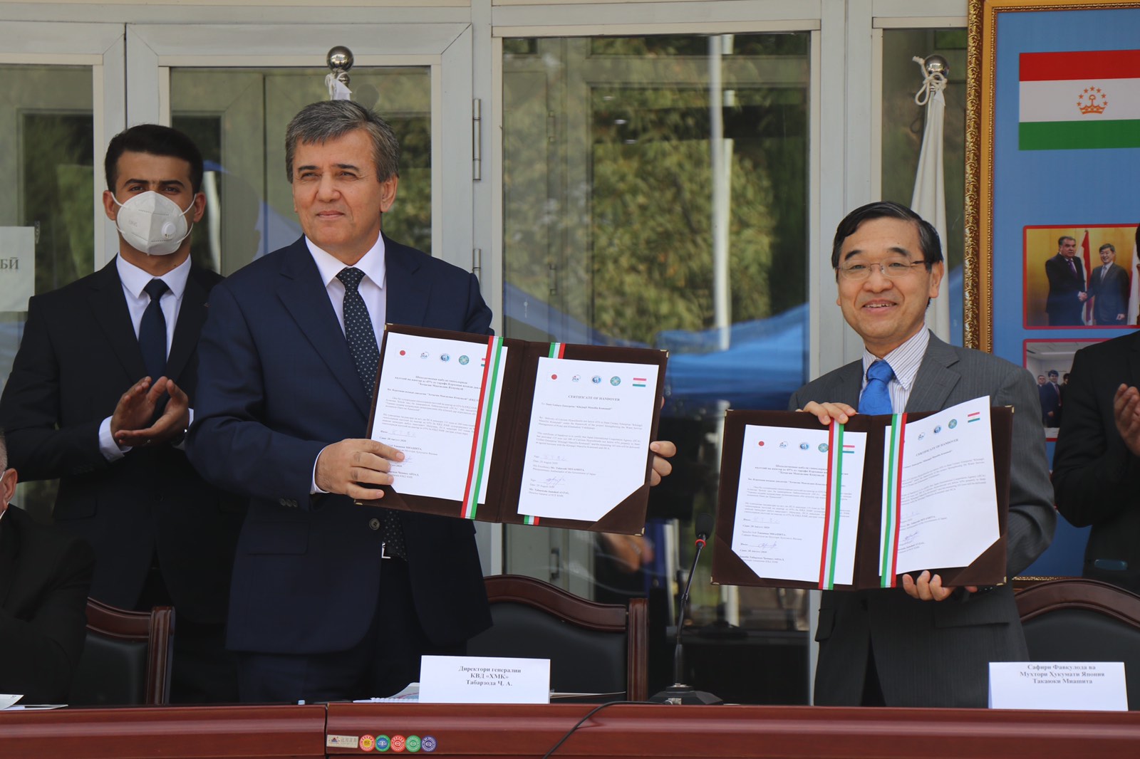 Далее стороны подписали документ о предоставлении/получении гуманитарной помощи. Его подписали посол Японии в Таджикистане, г-н Такаюки Мияшита и Генеральный директор ГУП «ХМК» г-н Джамшед Афзал.