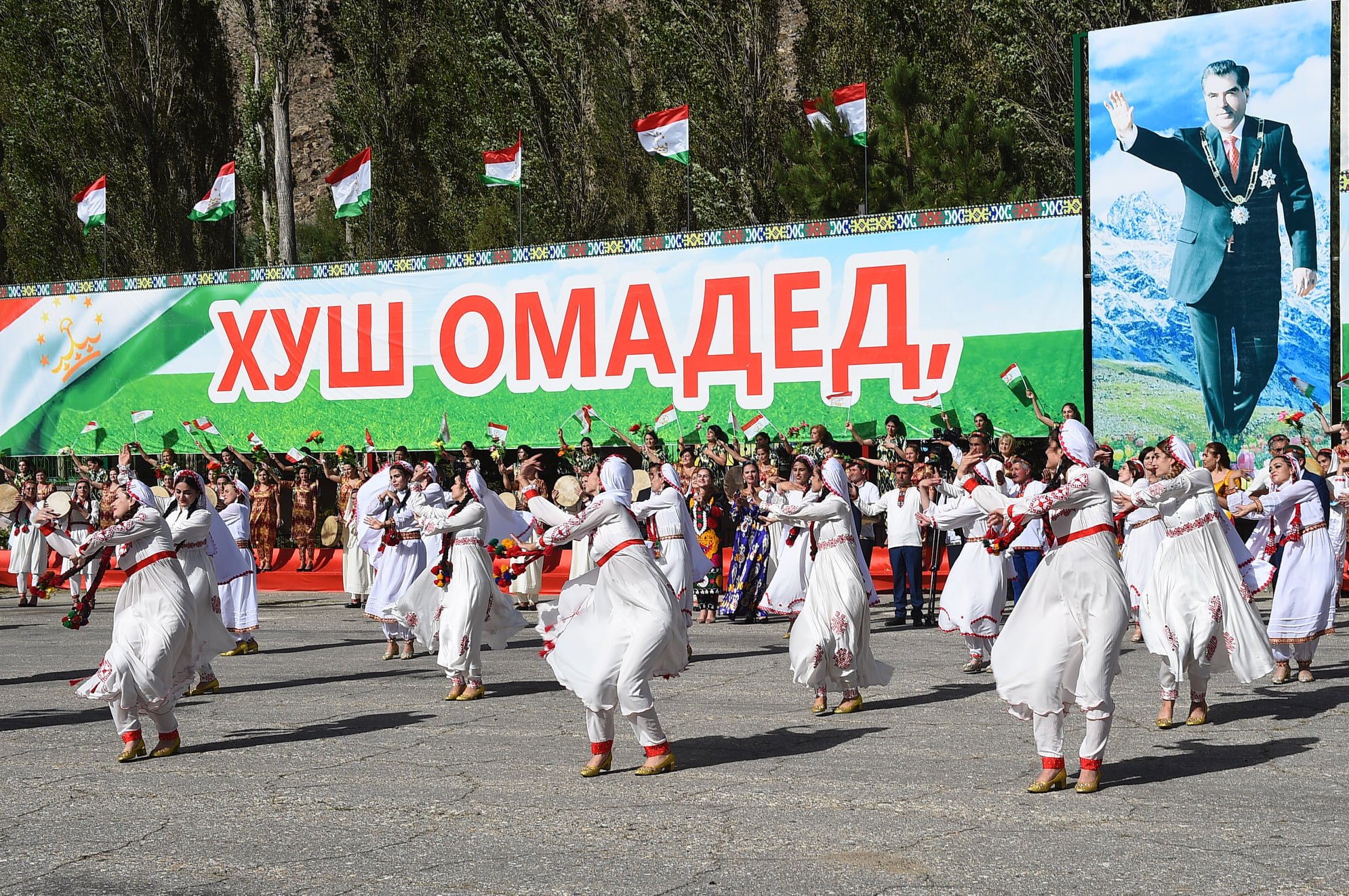 Артисты области представили Эмомали Рахмону культурную программу, «воспевающую вечный мир, единство таджиков и достижения периода независимости государства», – передает пресс-служба президента.