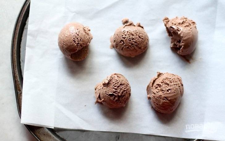 1. Ложкой для мороженого сформируйте шарики, выложите их на пергамент. Отправьте на полчаса-часик в морозильник.