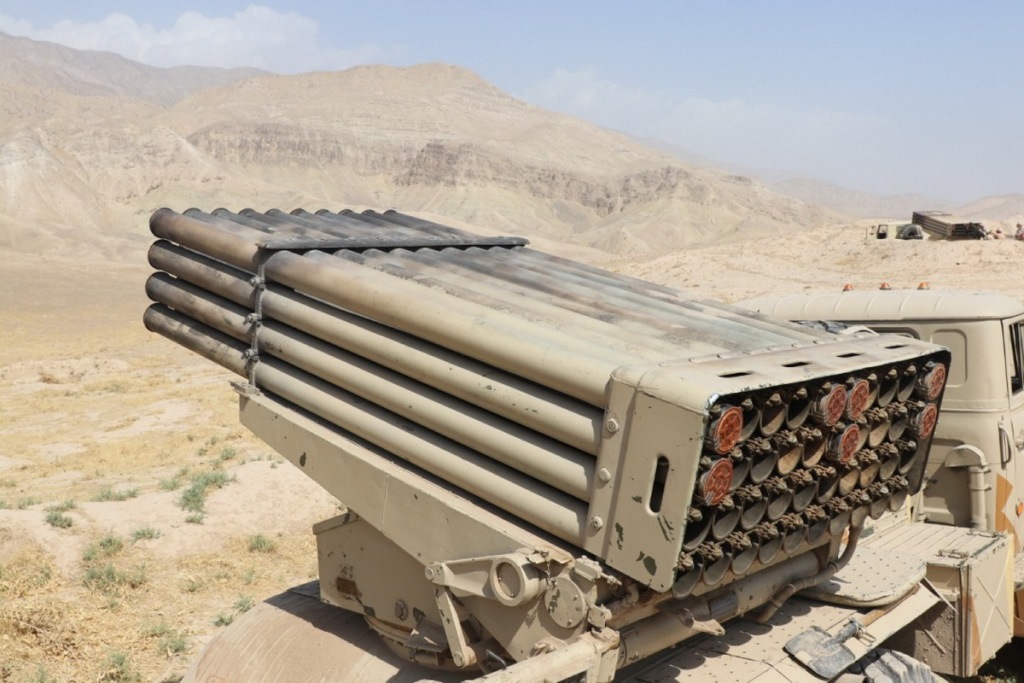 Реактивные системы залпового огня «Град» 201-й военной базы РФ с помощью беспилотной авиации уничтожили цели на учениях в горах Таджикистана.
