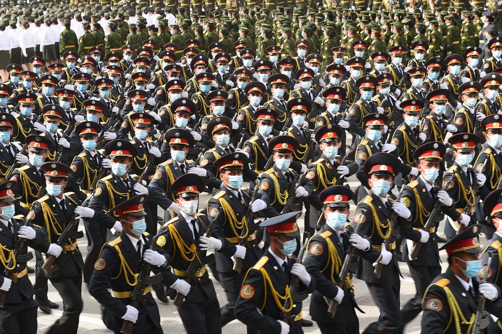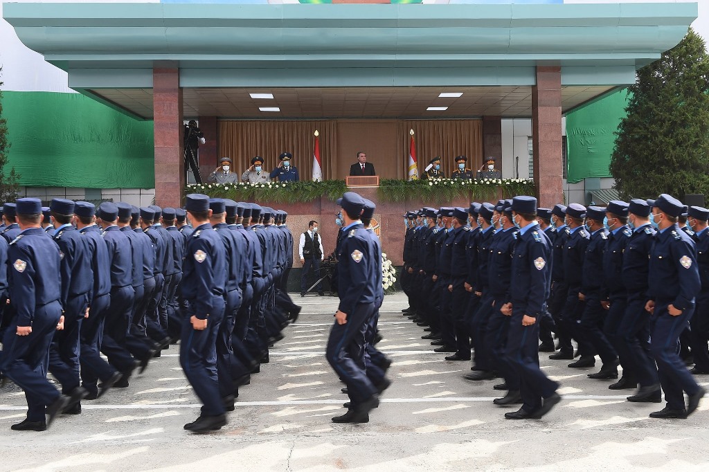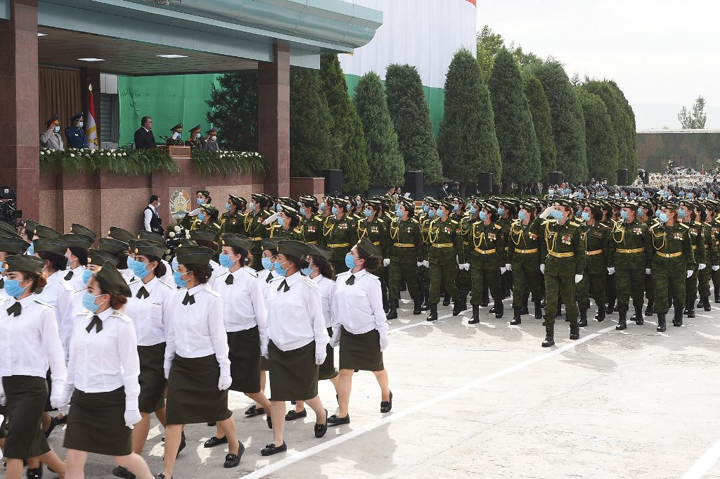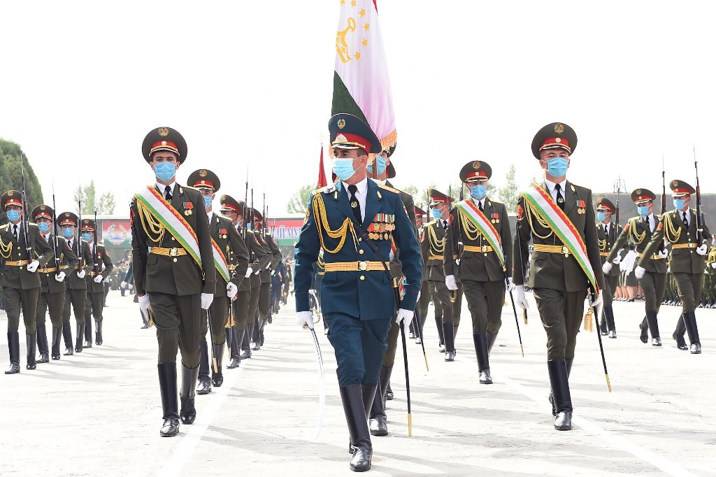 Затем парадные расчеты военного лицея Таджикистана, Минобороны, Генштаба Вооруженных сил страны, пограничники, ГКНБ, МВД, КЧС и других силовых структур прошли перед президентом торжественным маршем.
