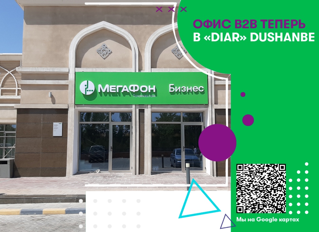 Компания «МегаФон Таджикистан» сообщает об открытии офиса по обслуживанию бизнес-клиентов по новому адресу. Теперь стать корпоративным клиентом оператора и изучить его инновационные В2В-услуги можно на ул. Хувайдуллоева, 2/1 (ЖК «Диёри Душанбе»).