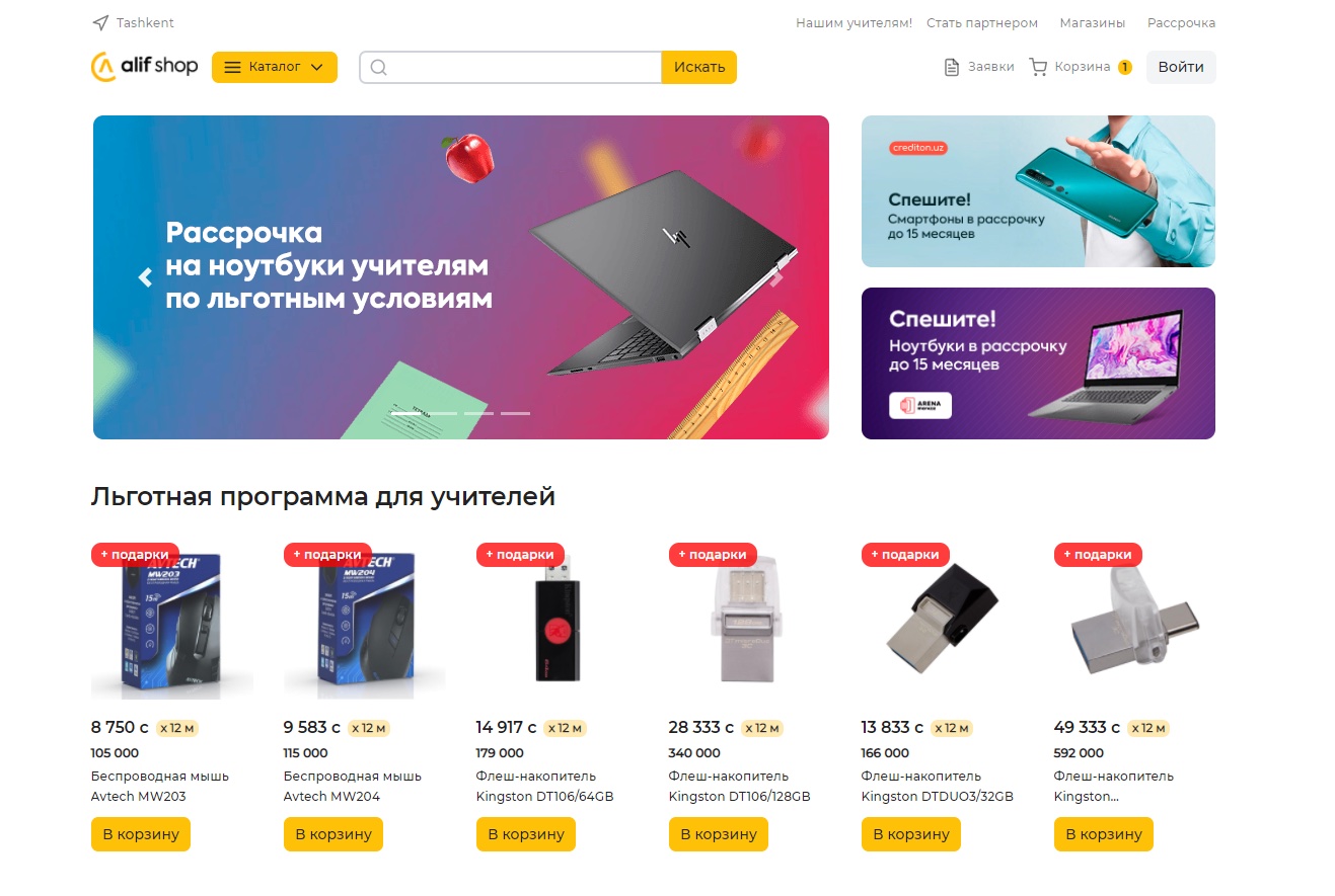 — Такая инициатива является хорошей возможностью для всех сторон. Приобретение техники является абсолютно добровольным и, с учетом этого, уже набрало весьма заинтересованную аудиторию, особенно в регионах страны. Мы хотим помочь преподавателям приобрести необходимую им технику для эффективной работы, особенно в условиях пандемии. Сотрудничество с «Алиф Молия» является частью этой программы, — говорит Рустамбек Комилов, ответственный по внедрению цифровой образовательной платформы в общеобразовательные школы страны.