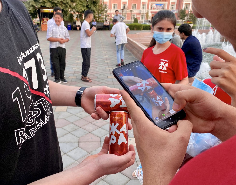 Прохожие смогли поучаствовать в развлекательной программе, а некоторые счастливчики, победившие в конкурсах, ушли с блоками напитка. В качестве ведущих выступили популярные блогеры — Zanjabil Bro.