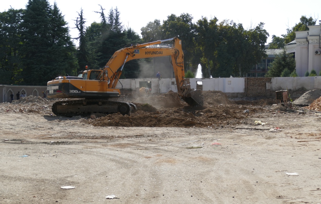 В Душанбе снесли Зеленый театр. О том, что его снесут, а на его месте возведут новое здание правительственного комплекса Таджикистана, стало известно еще осенью 2018 года. На сегодня здание театра уже полностью снесено, а территория будущей строительной площадки огораживается.