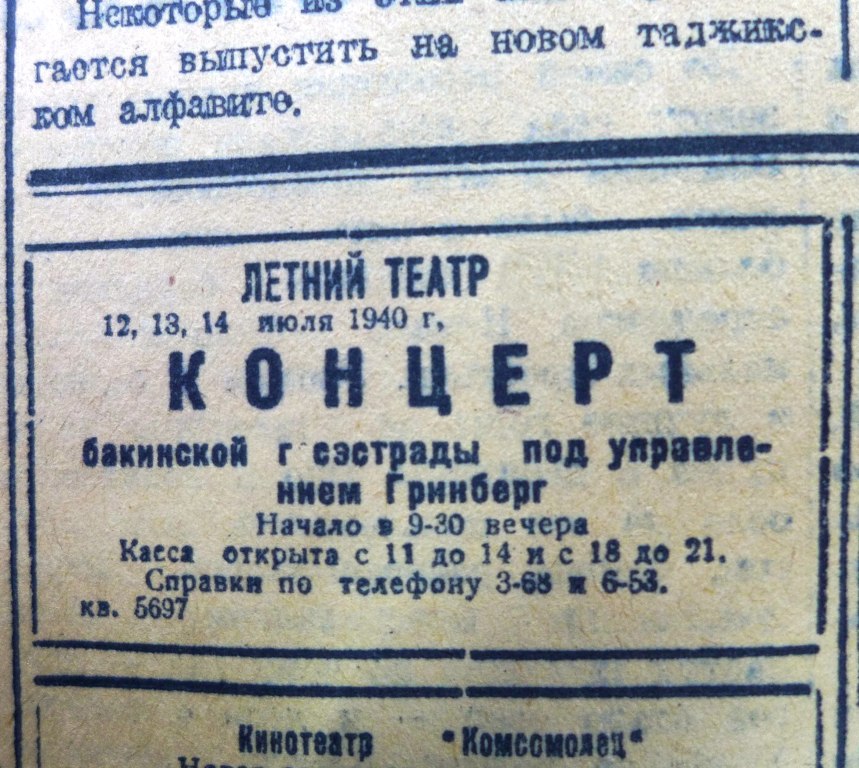 В 1939 году горожане здесь услышали известных советских эстрадных певиц Клавдию Шульженко и Анну Гузик. Зрители увидели родоначальника советского джаза Александра Цфасмана и других известных исполнителей. Летний театр в Сталинабаде за сезон 1939 года посетило 30000 человек. Во времена своей молодости Зелёный театр был окружён живописными аллеями, являясь воистину жемчужиной парка.