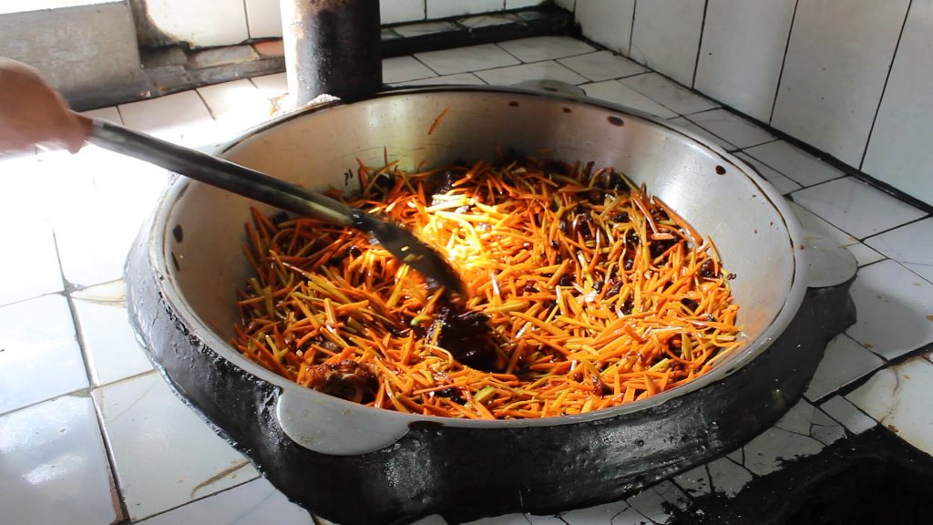 Плов в Исфаре по праву называют «королем» блюд. Во-первых, готовится исфаринский плов исключительно из местных ингредиентов: масло, мясо, лук, морковь, рис принципиально не привозят из соседних городов. Только соль аштского производства.