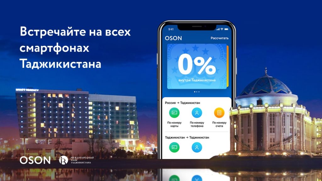Приложение OSON от Международного банка Таджикистана (IBT, уже хорошо известен своими переводами из России в Таджикистан по лучшим на рынке условиям) запустил переводы внутри Таджикистана.