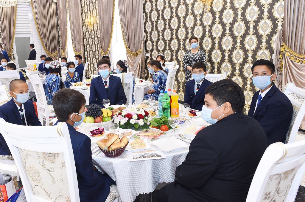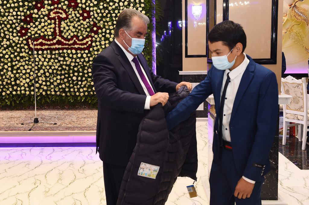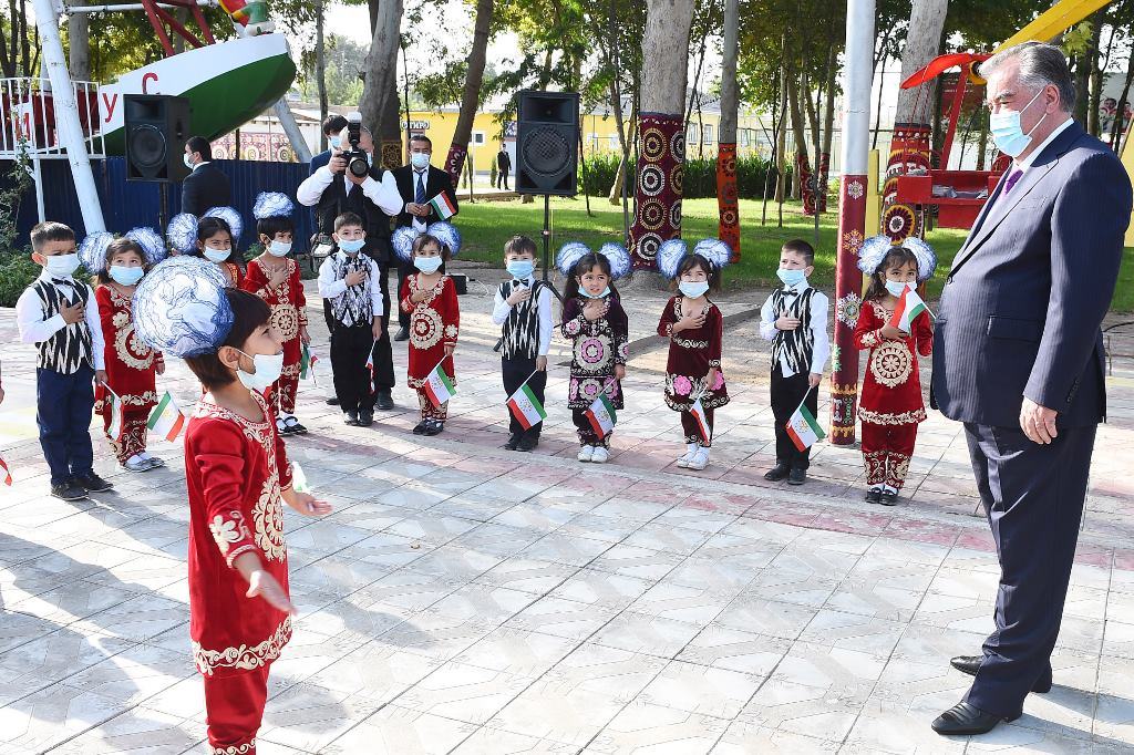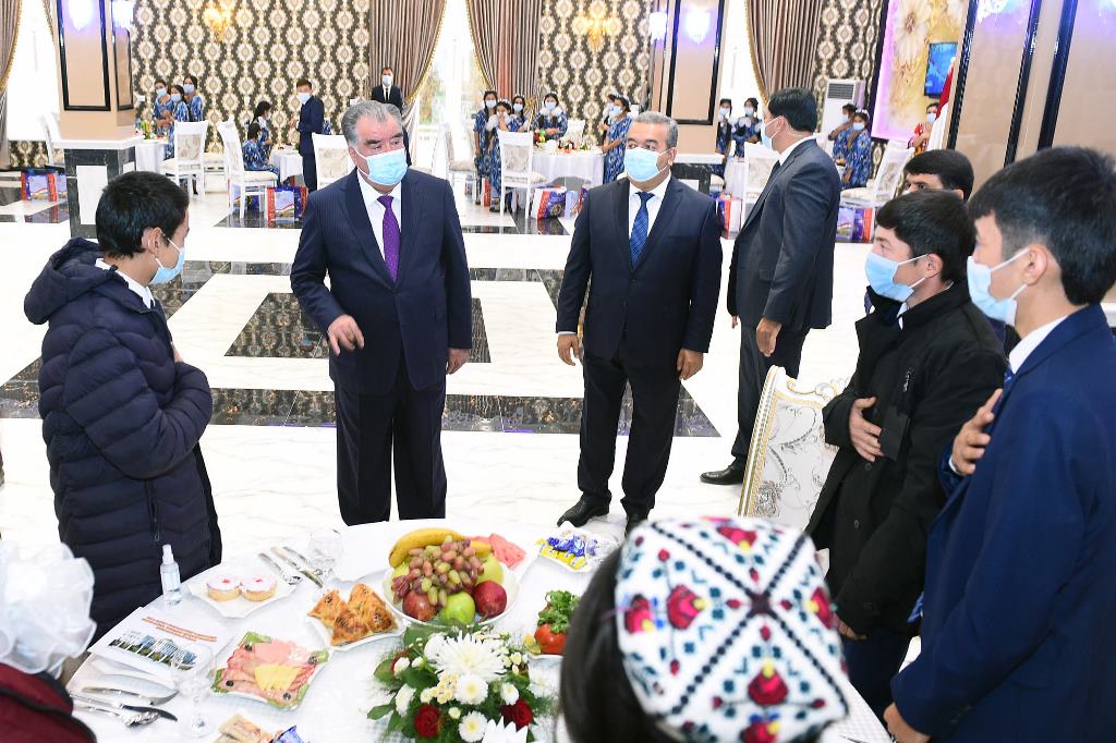 Здесь же президент встретился с группой сирот из районов Кубодиён, Дусти, Носири Хусрав, Шахритус и пообщался с ними.