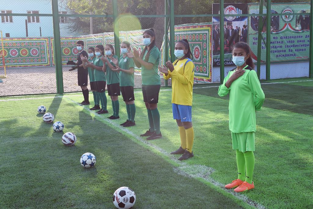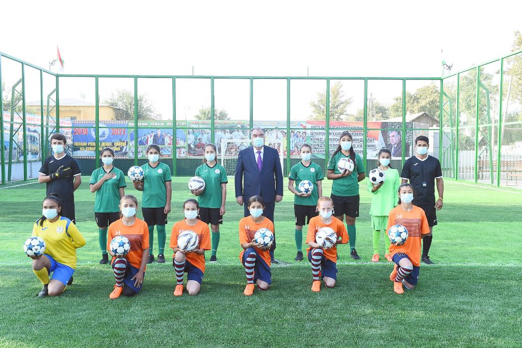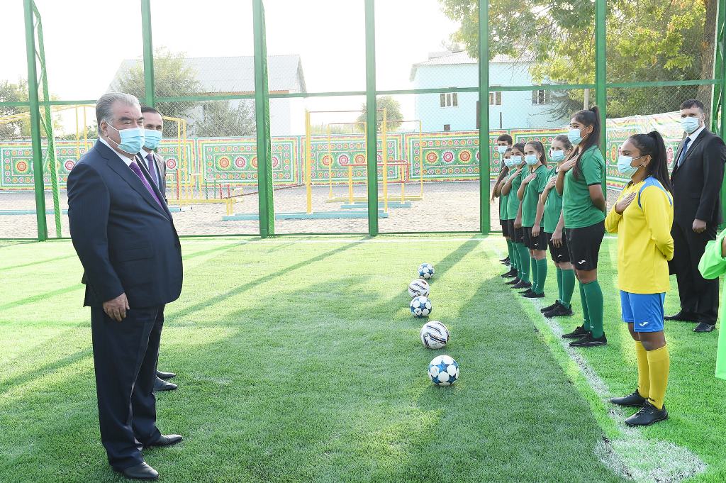 Спортивную площадку построил местный предприниматель Хуршед Махмадалиев. Общая площадь объекта составляет 0,16 га.