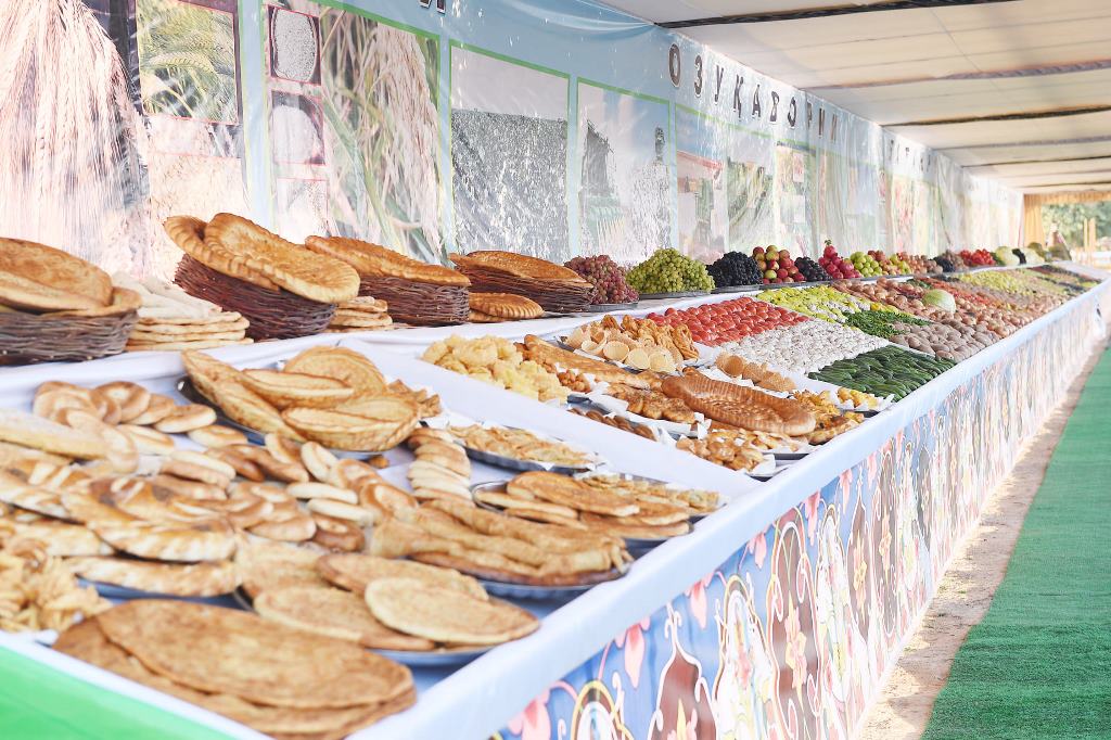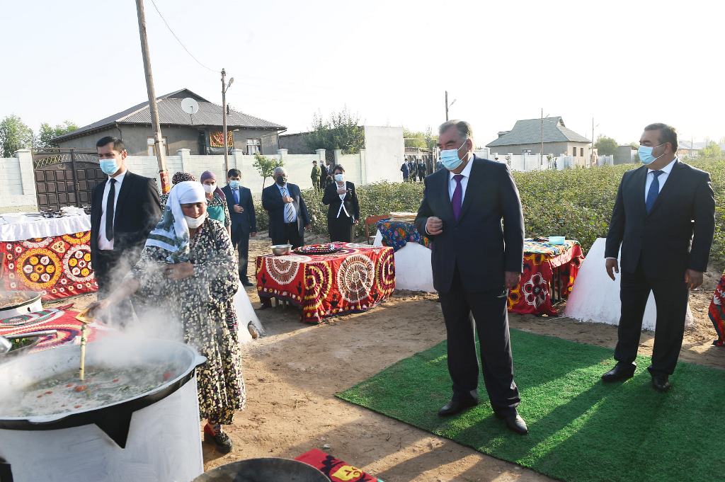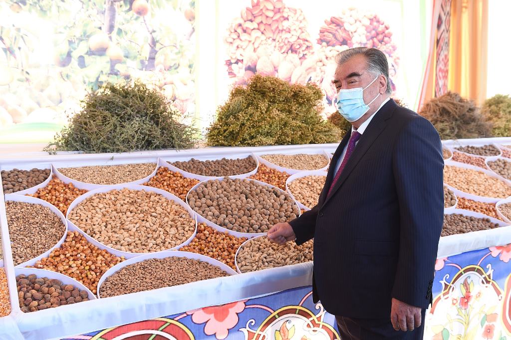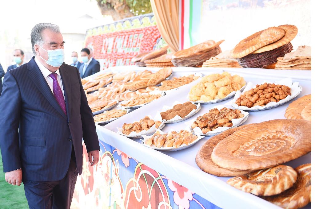 Здесь же глава государства посетил ярмарку достижений дехкан района.