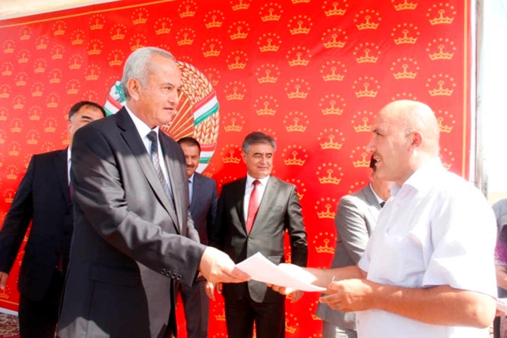 Первым делом областные власти начали выдавать жителям из различных городов и районов Согда земельные участки. Сертификат на право пользования землей являлся бесплатным, а оформление необходимых документов осуществлялось в ускоренном режиме. Землю получили свыше 7 тысяч семей.