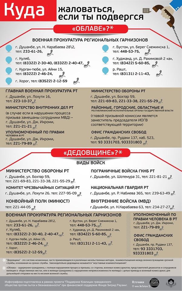 В рамках школы создана инфографика о том, куда обращаться если вы подверглись облаве и дедовщине: