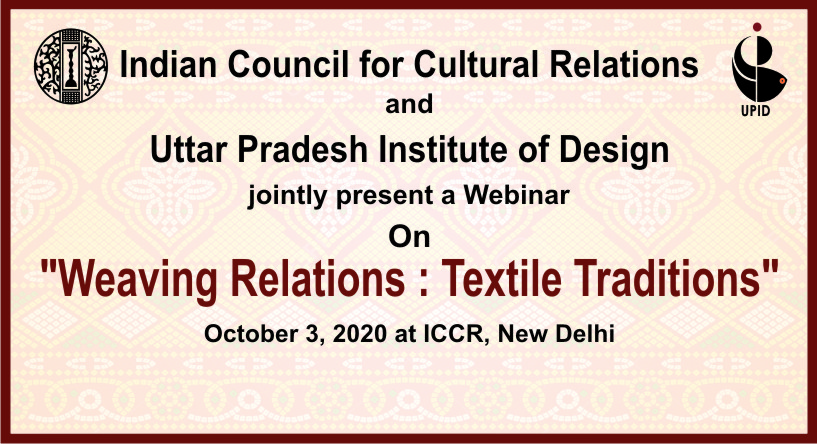 Индийский совет по культурным связям и Институт дизайна Уттар-Прадеш (UPID) совместно организуют 3 октября 2020 года международный веб-семинар «Отношения в сфере ткачества: Текстильные традиции» в честь 150-летия со дня рождения Махатмы Ганди.