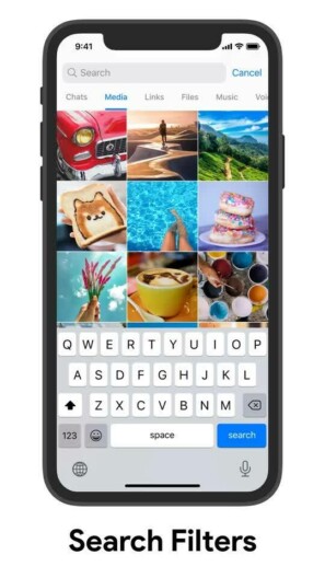 Пользователям будет удобнее искать сообщения с нужными типами вложений — можно просмотреть результаты поиска на отдельных вкладках «Медиа», «Ссылки», «Файлы». Строка поиска теперь понимает запросы вроде «14 августа» или «вчера». Похожим образом можно будет искать по сообщениям от определённого пользователя, группы, канала или бота.
