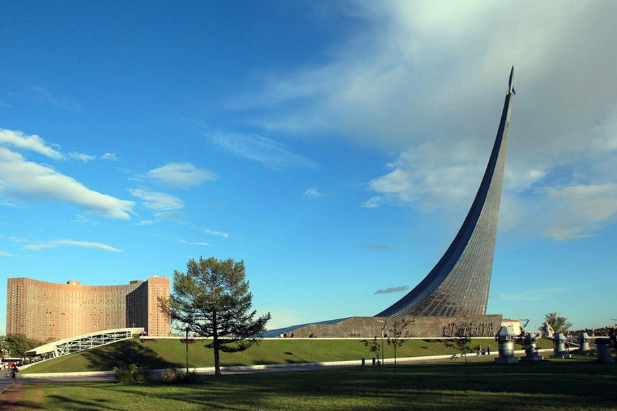 Взмывающая в небо ракета, оставляющая за собой шлейф дыма. Именно так выглядит композиция монумента «Покорителям космоса», высота которого составляет 107 метров. Открытие памятника было приурочено к очередной годовщине запуска первого искусственного спутника Земли, состоявшегося 4 октября 1957 года.