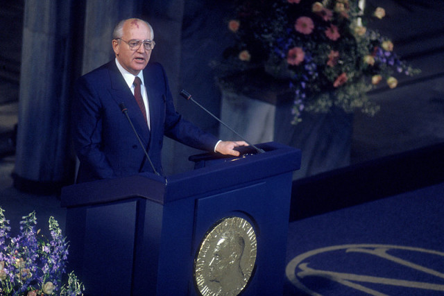 15 октября 1990 года президенту СССР Михаилу Горбачеву была присуждена Нобелевская премия мира. С приходом Горбачева к власти в СССР начался процесс демократизации, получивший название «перестройки».