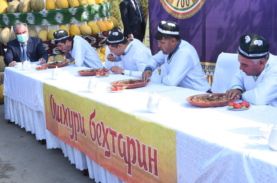 Президент Таджикистана Эмомали Рахмон выступил судьей на конкурсе «Лучший едок плова» в Согдийской области. Первое место на конкурсе занял Баходур Шокиров, житель Айнинского района, который получил приз в размере 3 тыс. сомони.