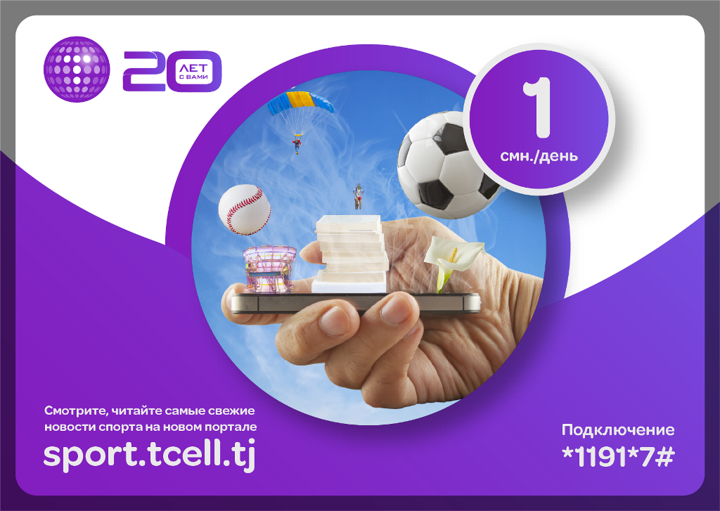 Все это доступно в наилучшем качестве на всех устройствах, в любое время и в любом месте, где есть зона покрытия 3G и 4G от Tcell! Оставайтесь в курсе самых актуальных новостей спорта всего за 1 сомони в день!