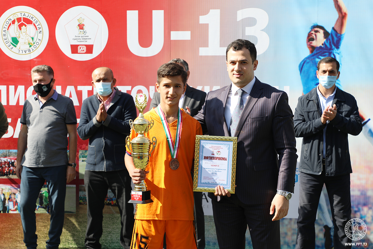 В матче за третье место юноши Специализированной спортивной школы олимпийского резерва Душанбе обыграли сверстников из бохтарского «Хатлона» со счетом 3:1. В финальный поединок вышли две команды Республиканской школы высшего спортивного мастерства по футболу. Игра завершилась победой второй команды РШВСМ. К этому успеху команду привел тренер Зайниддин Рахимов.