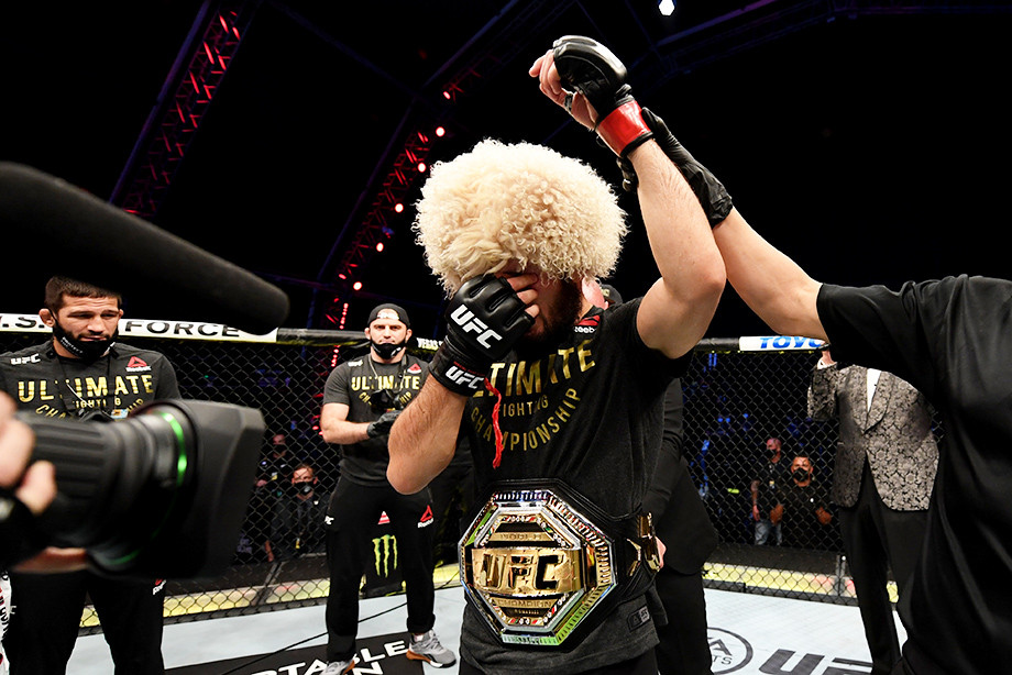 Свою победу Хабиб посвятил своему отцу и тренеру Абдулманапу Нурмагомедову, умершему летом этого года от осложнений на фоне заражения коронавирусом.
