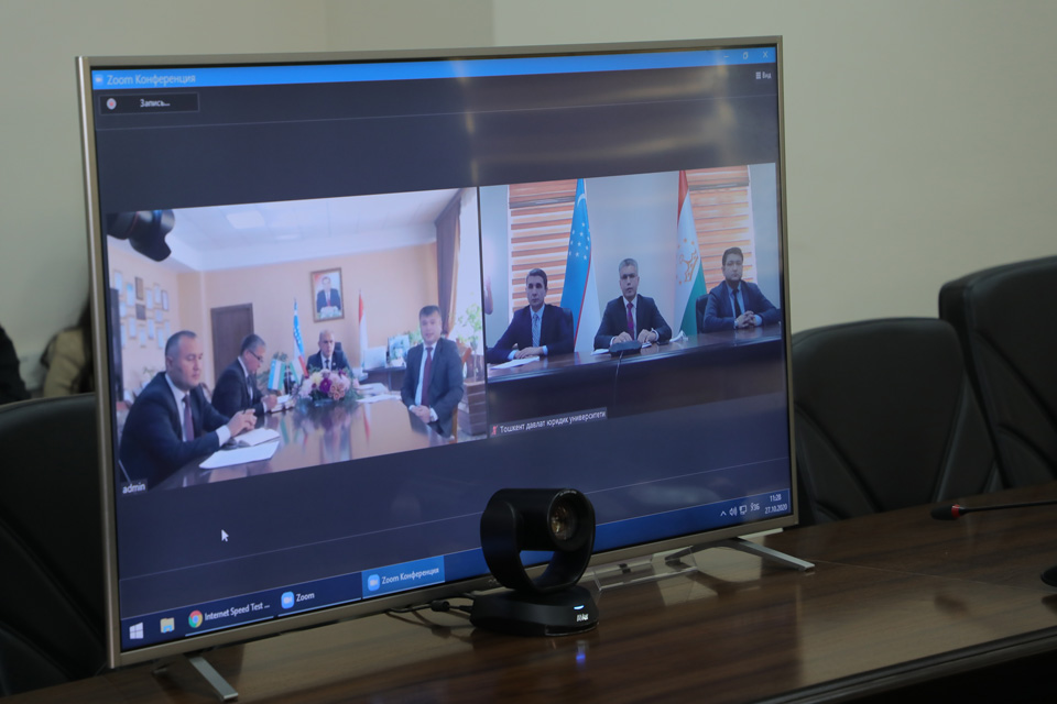На торжественной церемонии подписания договора, которая проводилась в онлайн режиме через платформу «Zoom», приняли участие ректор Ташкентского государственного юридического университета Рахимжон Хакимов, ответственные сотрудники вуза, ректор Таджикского государственного университета права, бизнеса и политики Мумин Шарифзода и другие представители Таджикского университета, сообщает официальный сайт Ташкентского государственного юридического университета.