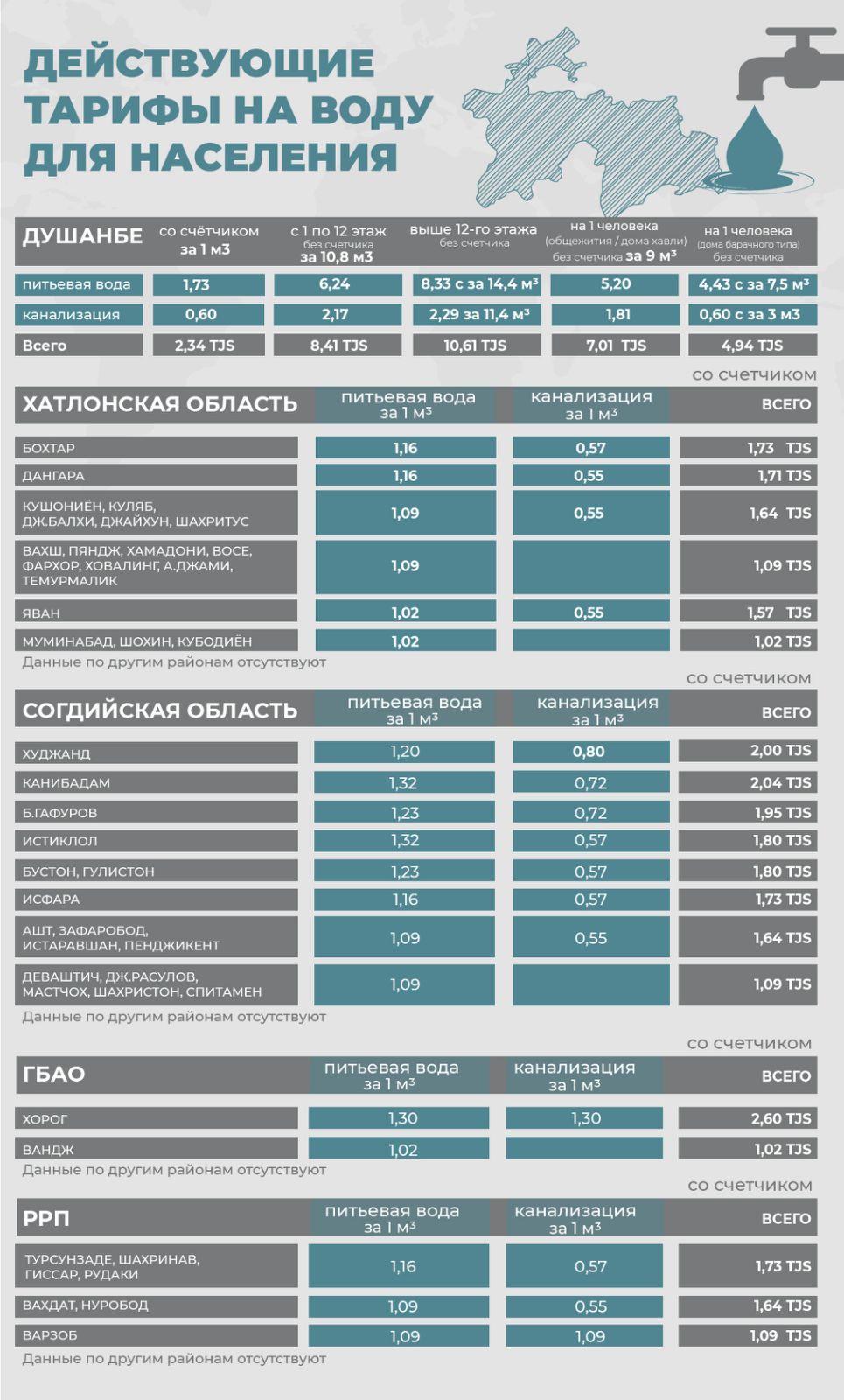 А мы подготовили графику тарифов на воду для населения, которые сейчас действуют в стране.