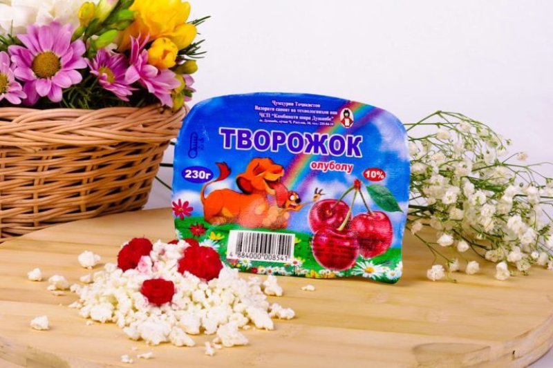 Фруктовые творожки "Шири Душанбе" имеют 5 разновидностей: с клубникой, с вишней, с персиком, с малиной и со злаками.