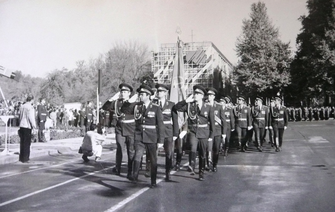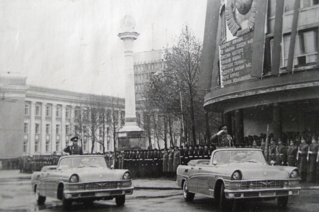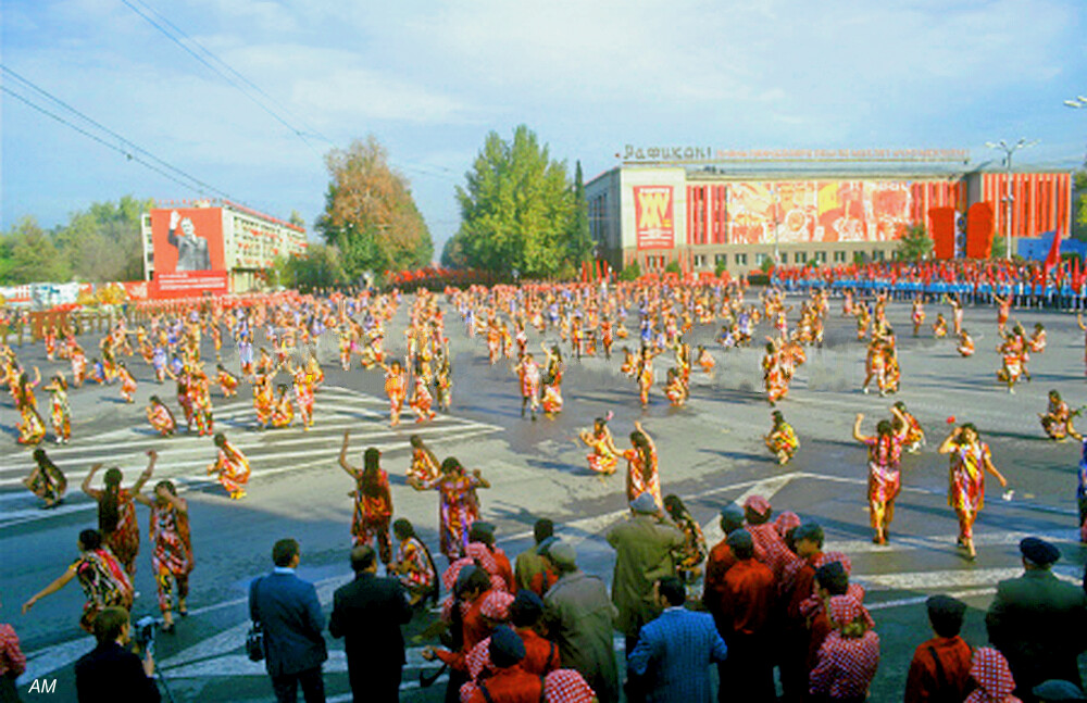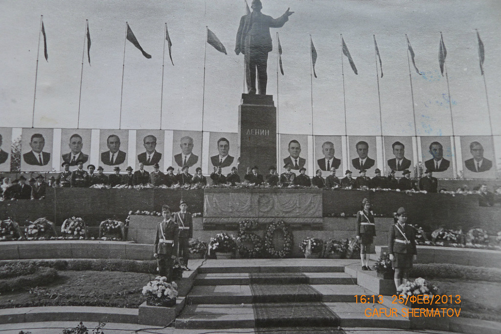 На трибуну у памятника им. Ленина выходили первые лица республики, принимавшие парад и приветствовавшие трудящихся, а также студенты и школьники, которые маршировали с флагами, плакатами и транспарантами в руках. Но перед демонстрацией обычно проходил военный парад, который всегда оставлял у горожан незабываемые впечатления.