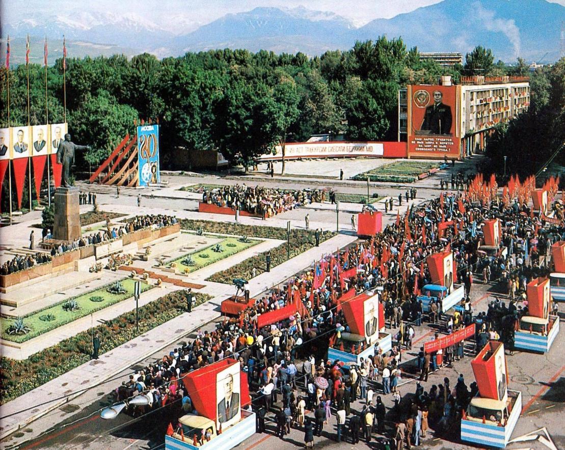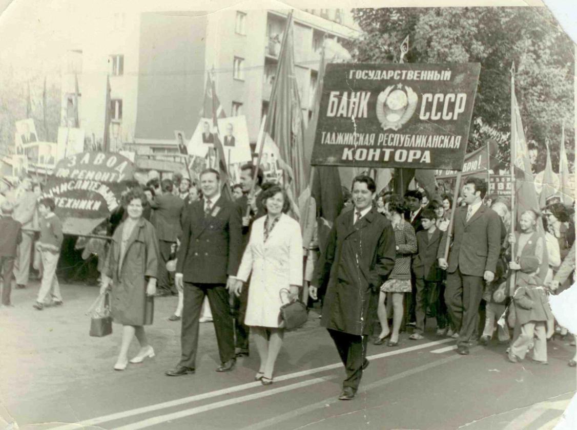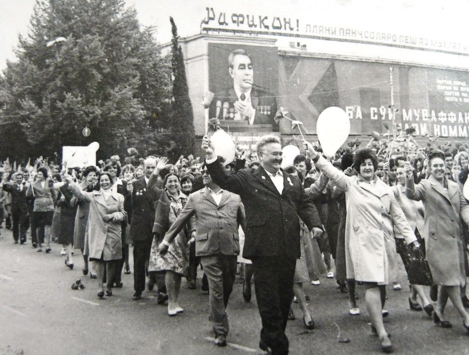 Сначала строились колонны по предприятиям и учреждениям, которые объединялись в район и вливались в общую демонстрацию по улице Ленина (Рудаки) и ее проходом по главной площади Душанбе им. Ленина.