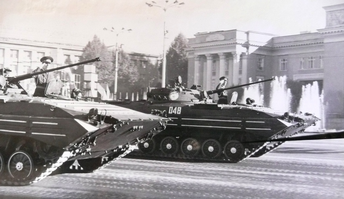 Сводный военный оркестр 201-ой мотострелковой дивизии наполнял площадь мощью военных маршей. И, конечно, особый восторг у горожан вызывала колонна военной техники. Танки Т–72, бронетранспортеры БТР-80, машины с реактивной системой залпового огня БМ – 21 и другая военная техника.