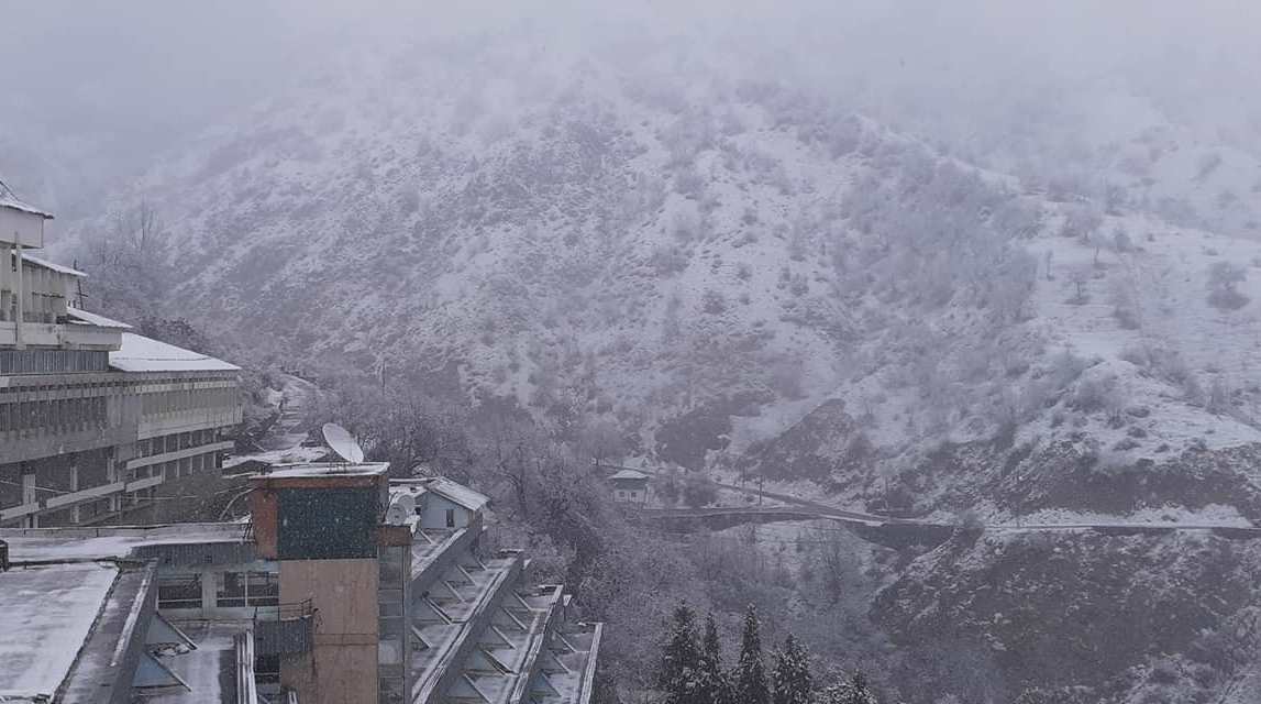 Журналист Холикназар Джумаев поделился фотографиями первого снега в Ходжаобигарм Варзобского района.