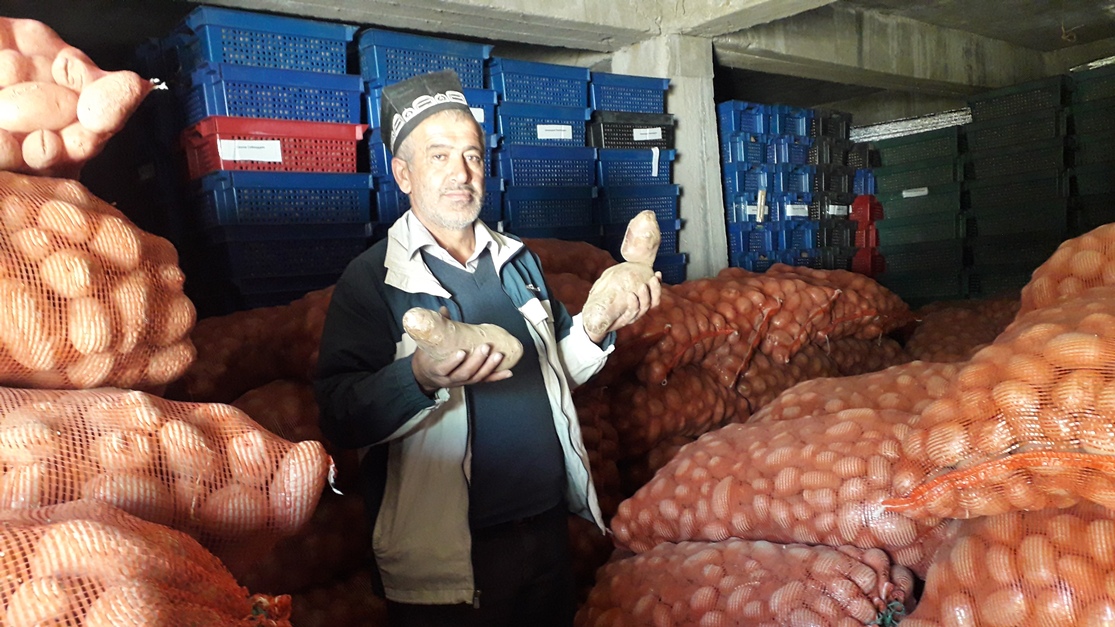 «Этот же сорт картофеля был посеян в Нурабадском районе, где была отмечена высокая урожайность. Она могла бы быть и выше, но в Шахристане особые погодные условия и данный сорт картофеля к нашим условиям еще не адаптирован», – отмечает Акрамджон Камолов, агроном-консультант ФАО.