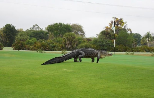 Видео от 11 ноября, которое особенно распространилось по сети, запечатлело гигантского аллигатора на поле для гольфа. Ролик сделал гольфист Тайлер Столтинг.