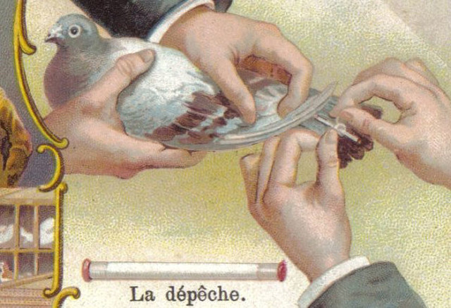 150 лет назад в этот день первая официальная линия голубиной почты связала Тур и Париж. Голуби были официально приняты почтовой администрацией в качестве средств доставки корреспонденции во время осады Парижа в 1870 году. Сообщения фотографировались с большим уменьшением. Пленка помещалась в кусочек полого гусиного пера, заклеивалась воском и привязывалась к почтовому голубю. Голубь нес 15-20 таких пленок. В Париже был открыт «голубиный почтамт», где происходила расшифровка получаемых сообщений.