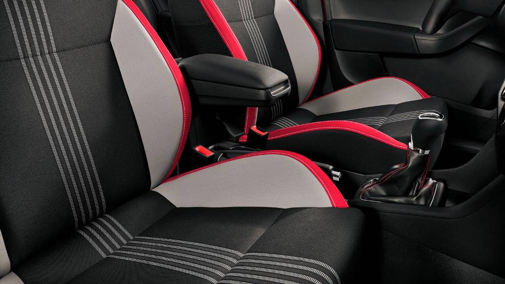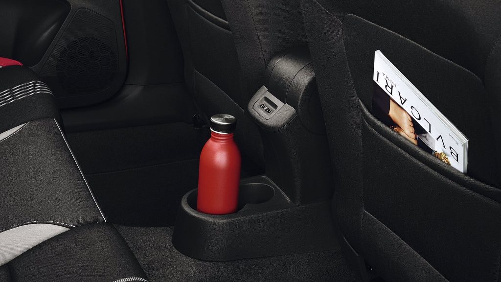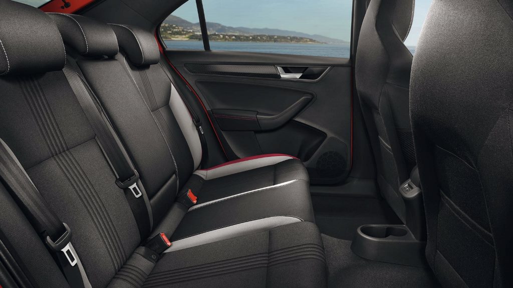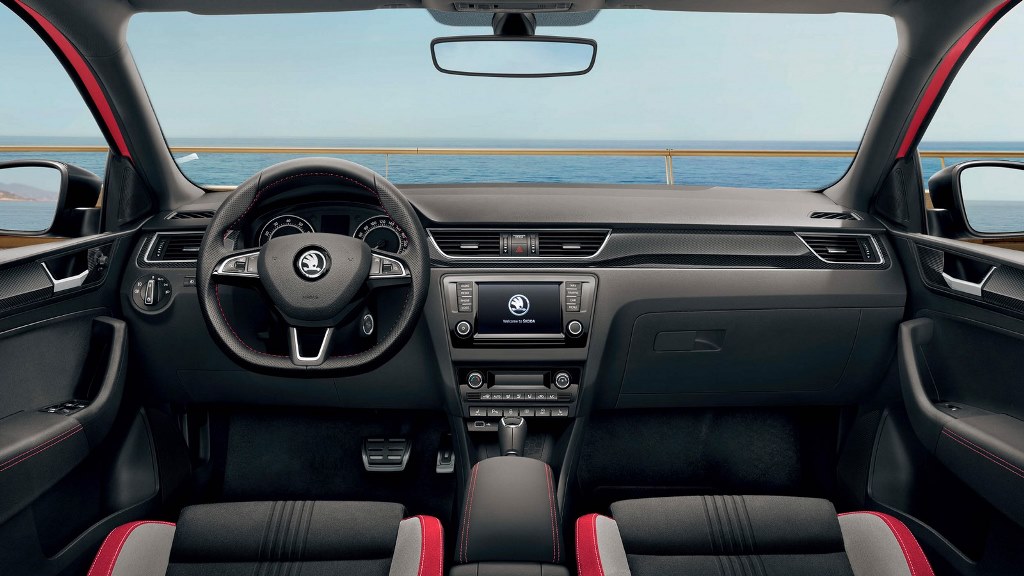 Škoda остается верна своему спортивному прошлому, не забывая при этом и о комфорте — удобный водительский подлокотник, специальные накладки на внутренней части дверей, кожаный рычаг стояночного тормоза, рычаг КПП и манжета из искусственной кожи, подстаканник в центральной консоли, две лампы для чтения спереди + одна лампа для чтения сзади, рулевая колонка с ручной регулировкой вылета и наклона, а еще перчаточный ящик с подсветкой, очечник и косметическое зеркало справа, сетка-карман на внутренней части спинок передних сидений и еще множество других удобных приспособлений.